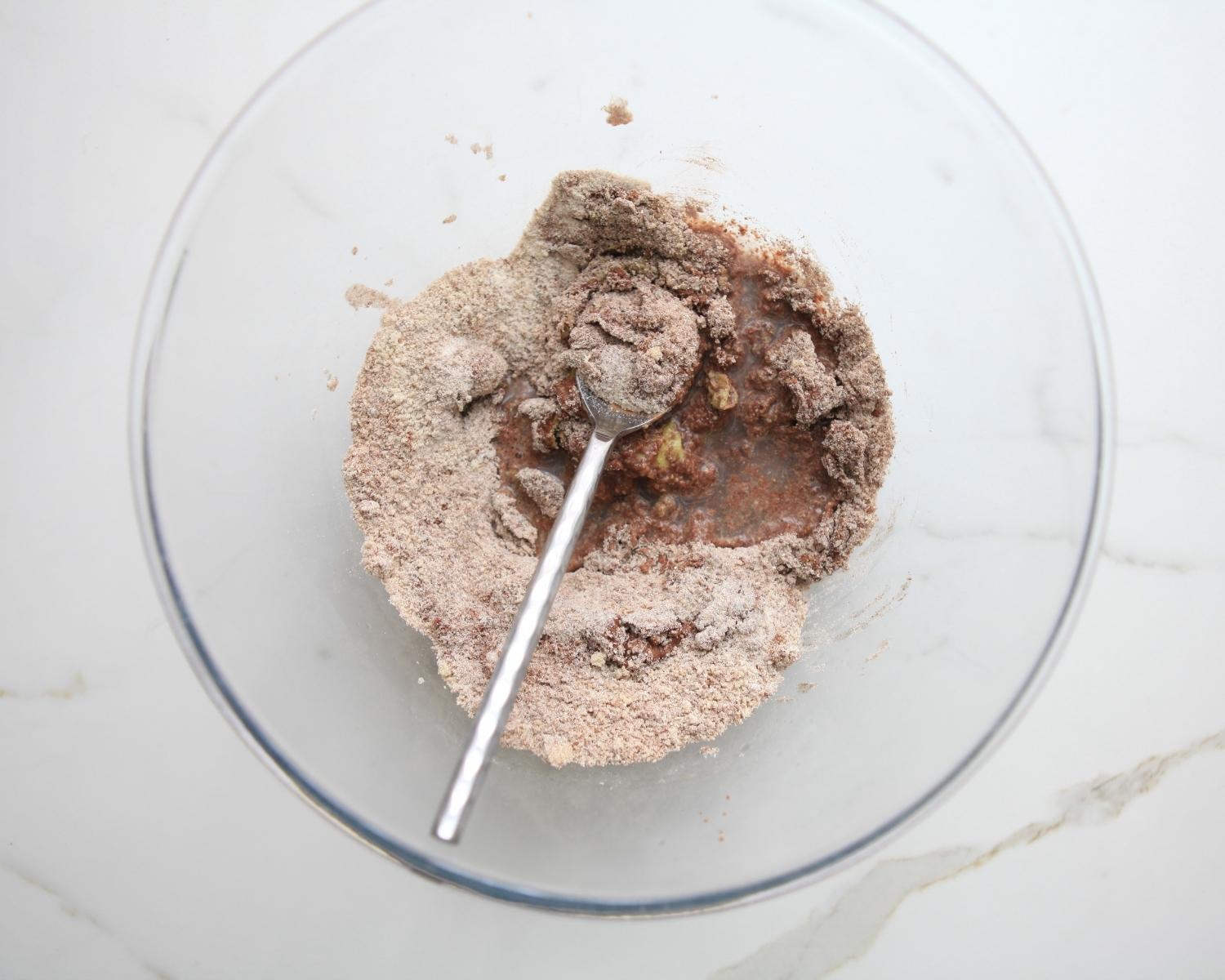 1. In a bowl, combine the Delicious Treat Slices, protein powder, cocoa powder, almond flour, and water. Mix well until a thick dough forms.