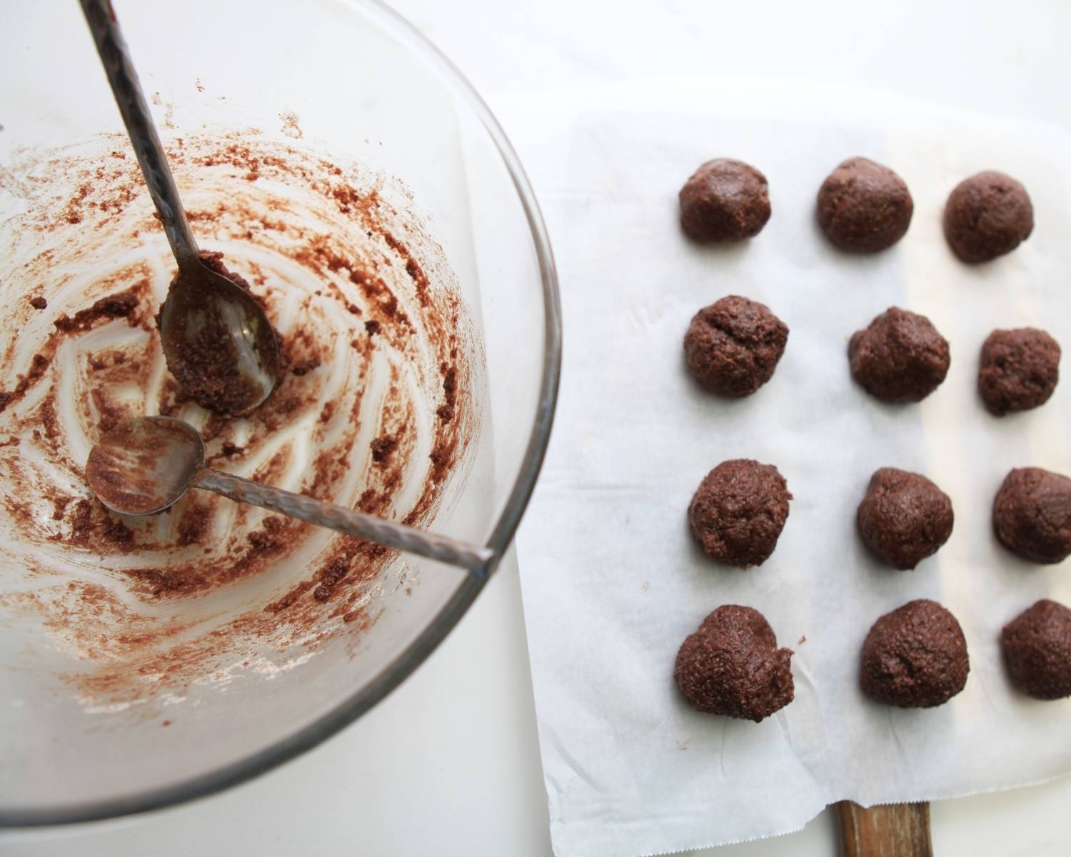 3. Roll the mixture into small bite-sized balls and set aside on a lined tray.