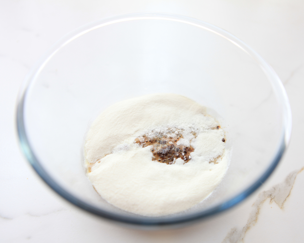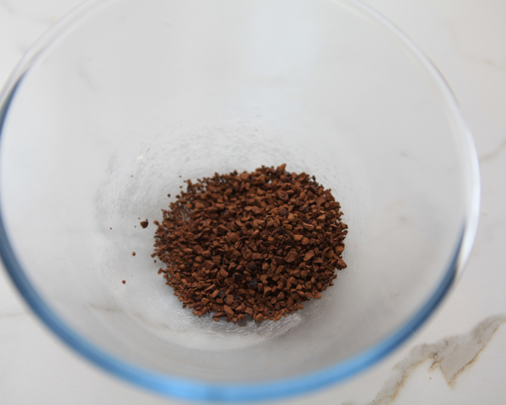 - In a mixing bowl, add the flavoured instant coffee, granulated sweetener, tasteless protein collagen, and hot water.