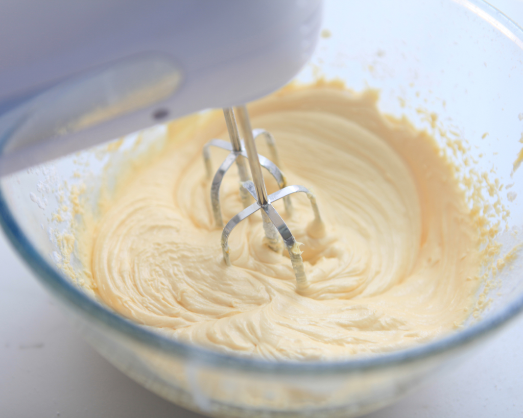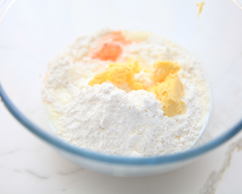 - In a large mixing bowl, combine the all-purpose baking mix, eggs, milk, yoghurt, and butter. Use a hand mixer to mix until smooth and well combined.