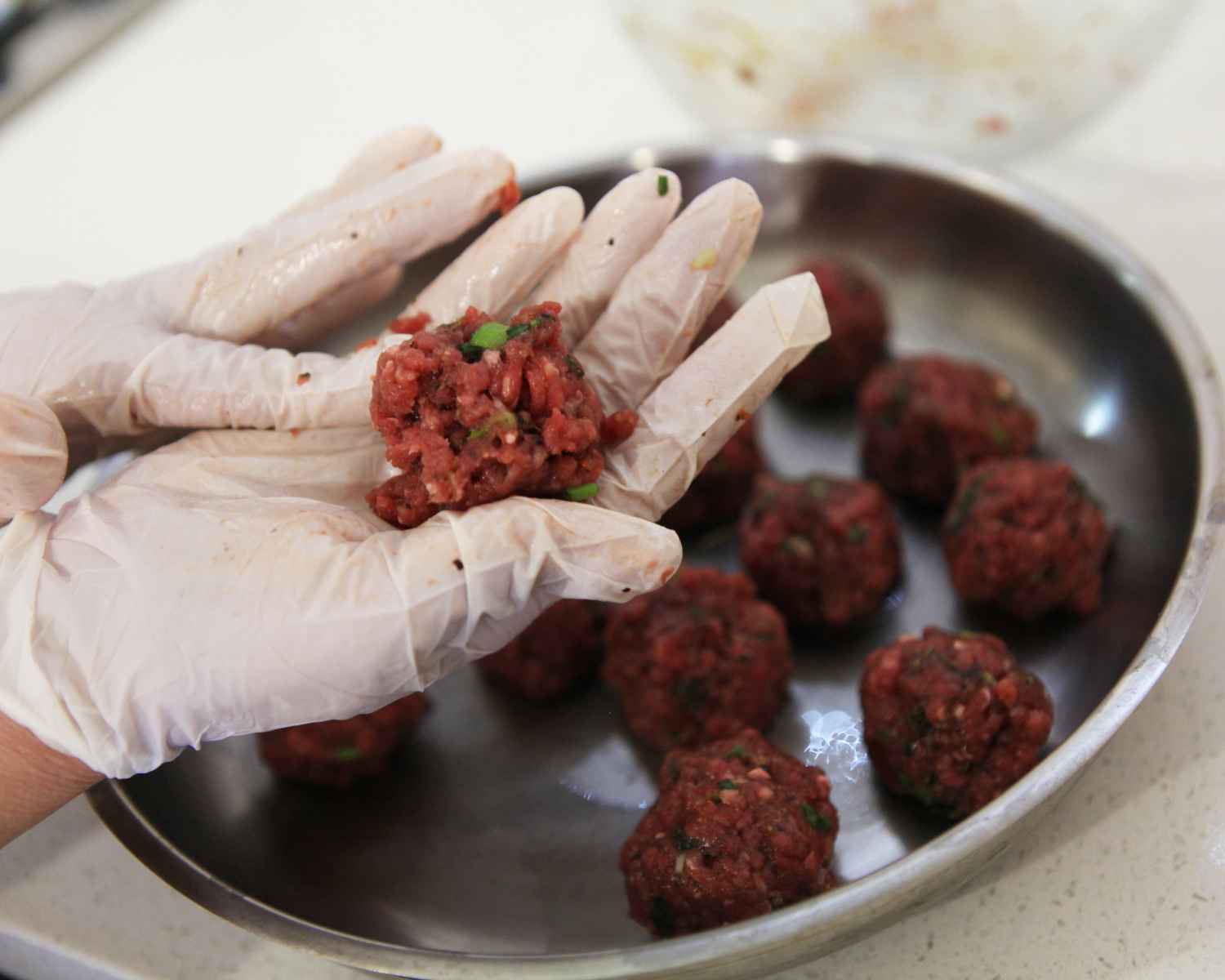 Rolling the meatballs