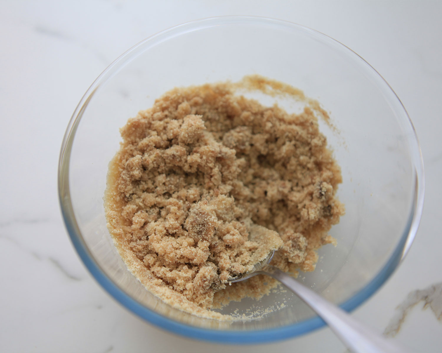 3. In a bowl, mix almond meal, melted butter, sweetener, and cinnamon until the mixture resembles damp sand.