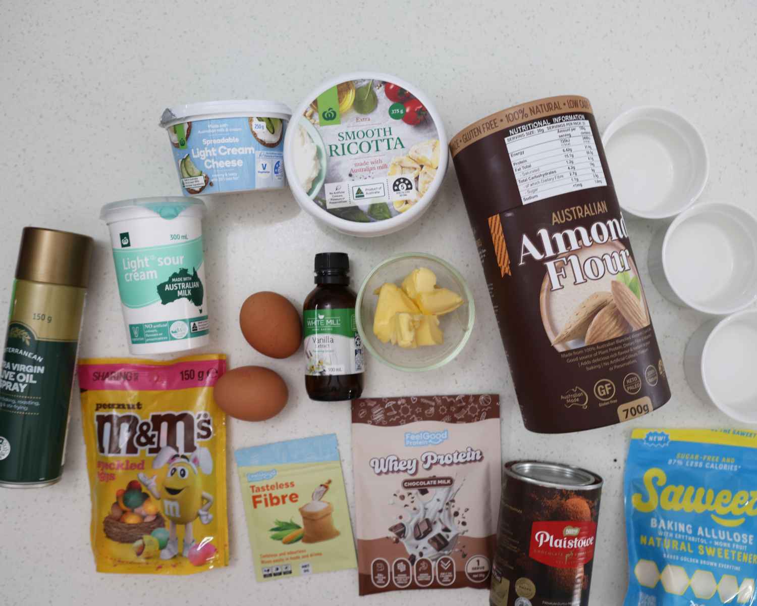 Ingredients used to make Mini Chocolate Protein Cheesecake recipe