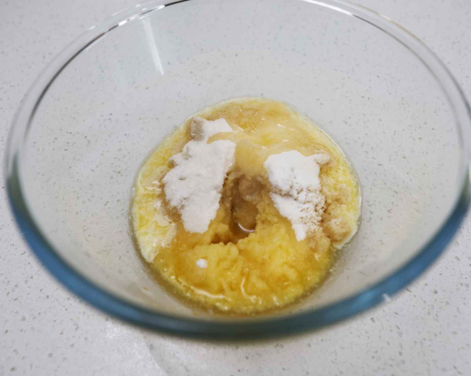 Wet ingredients  added to the bowl for Mini Chocolate Protein Cheesecake recipe