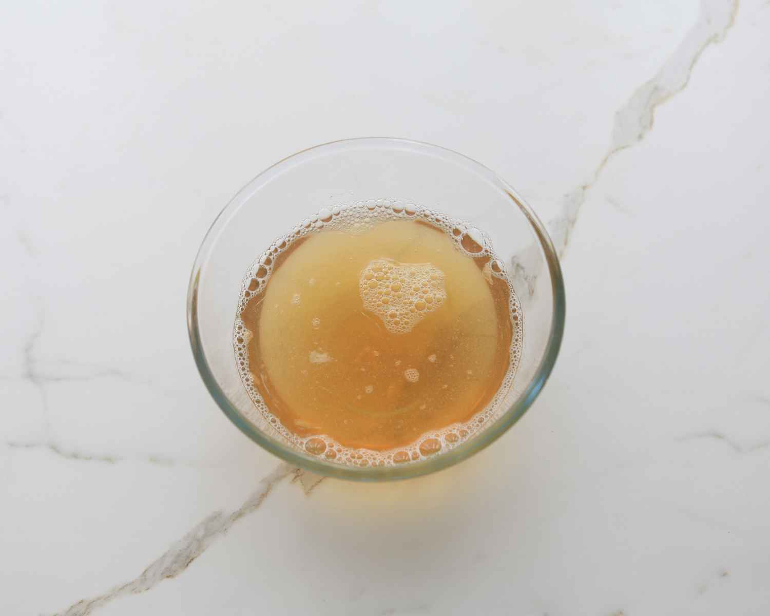 - Pour hot water over the bloomed gelatin and stir until completely dissolved and lump-free.