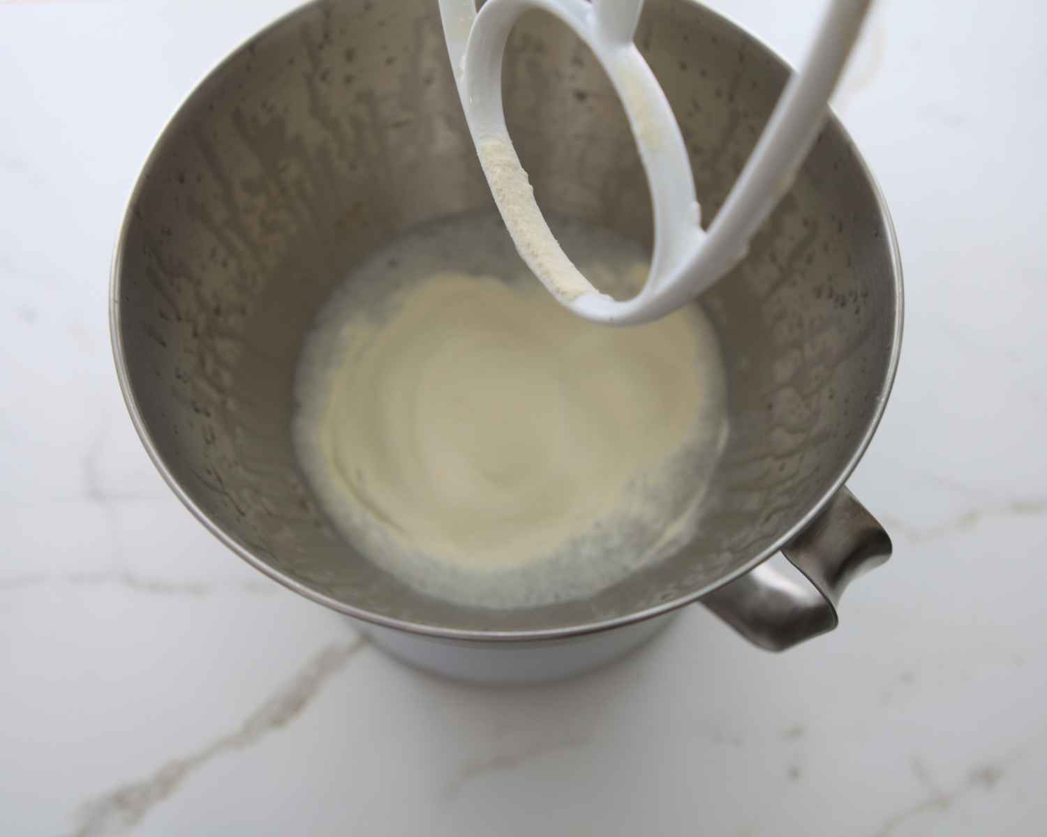- Using a hand or stand mixer, whip on high for 6–8 minutes until thick, glossy, and holding firm peaks.
