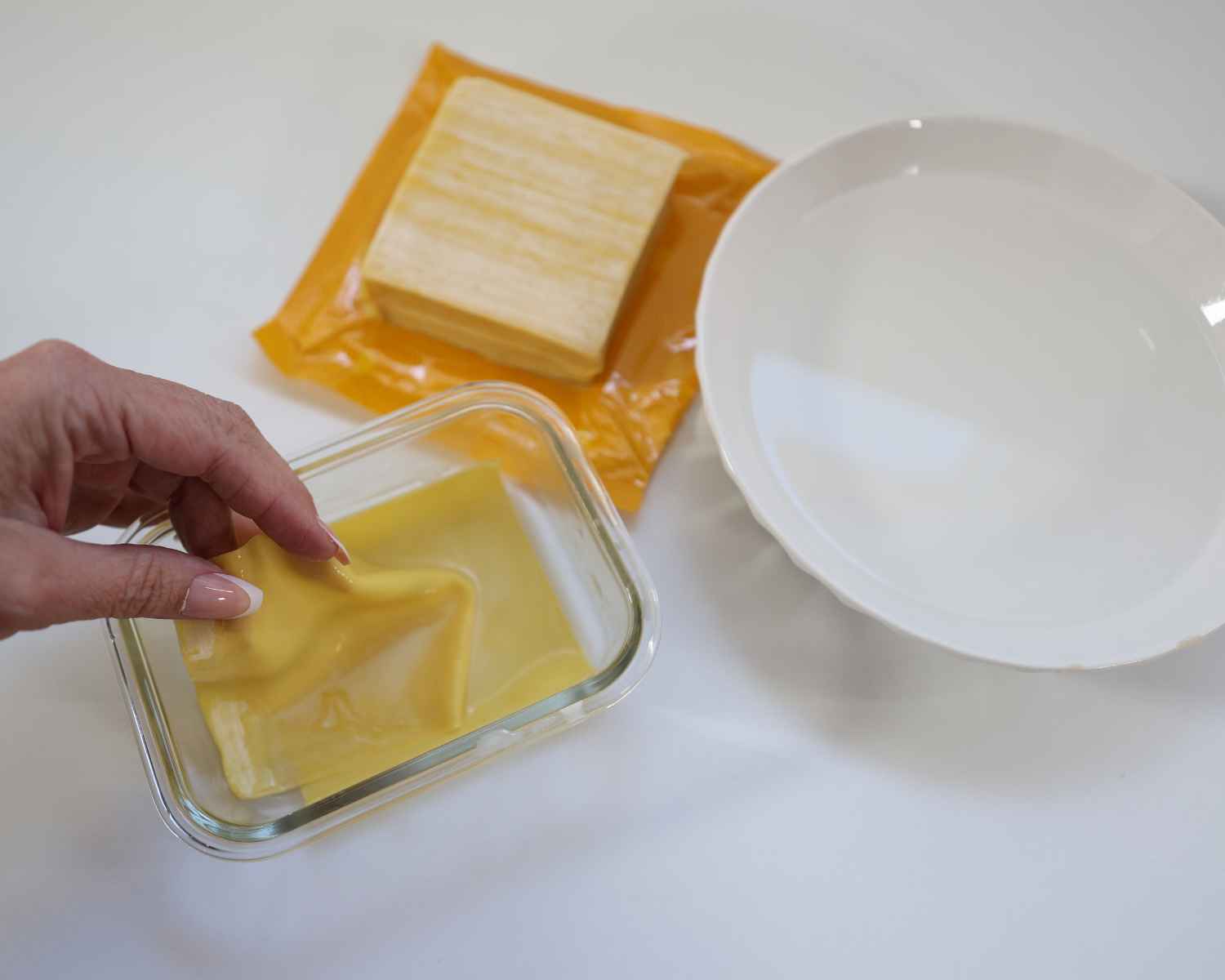 5. Carefully pour 80ml of water around the edges of the dish to help create steam.